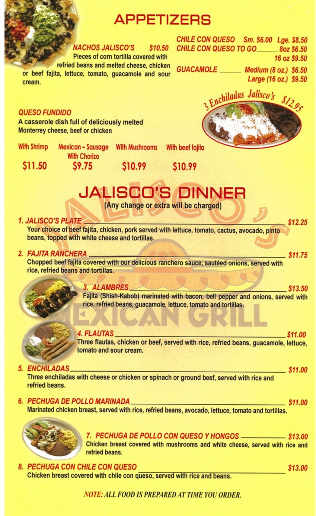 jalisco mexican food menu